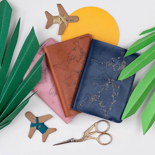 Stitch Where You've Been Passport Cover Kit | Pink Leather