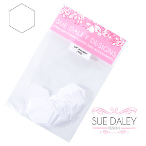 What size template do I purchase?: All of our English Paper Piecing acrylic templates have a 1/4" seam allowance built into them to allow for rotary cutting your fabric. When purchasing the template you require simply purchase the template you need for the finished size e.g. 1" Hexagon papers will work with a 1" Hexagon template.