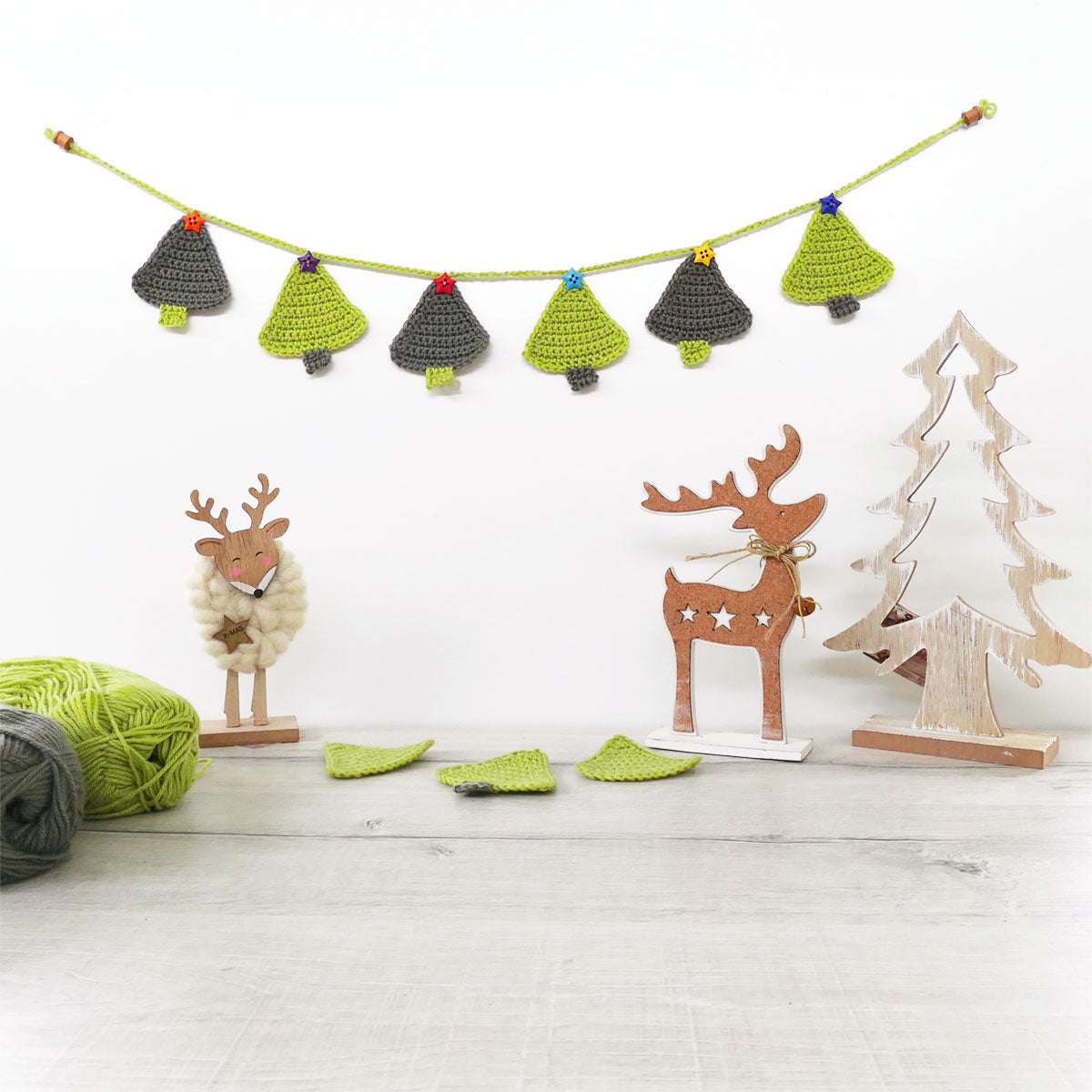 Deck the halls with this adorable beginner-friendly Christmas garland! Designed for ease and enjoyment, this crochet project works up quickly and introduces simple stitch decreases to create charming triangle-shaped trees.
