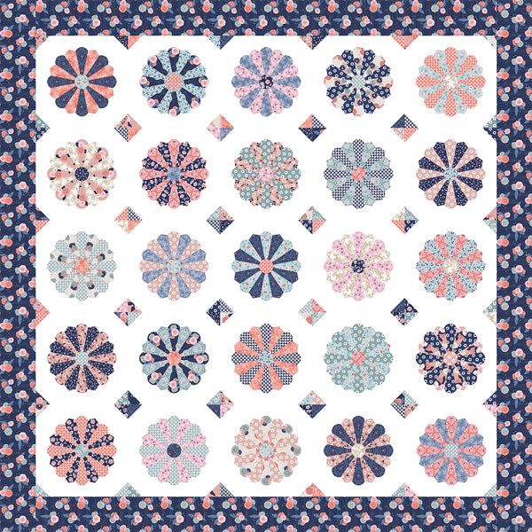 Artikelbeschreibung : Auf diesem Quilt sind Blöcke zum Thema „English Paper Piecing Dresden“ abgebildet, die auf Hintergrundquadrate appliziert sind. Kratzige, schneeballförmige Ecken rahmen jeden Block ein, um ein einfaches, aber wirkungsvolles Design zu schaffen.