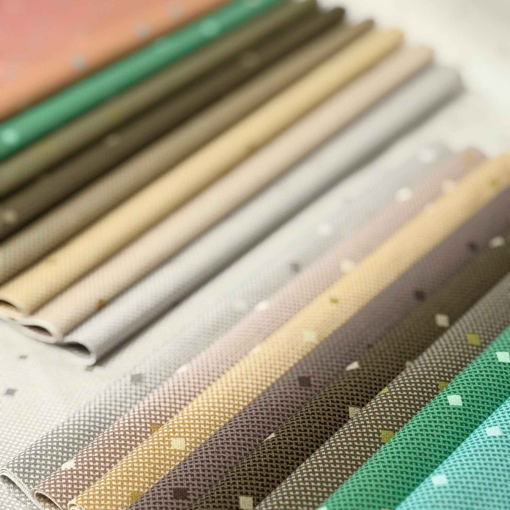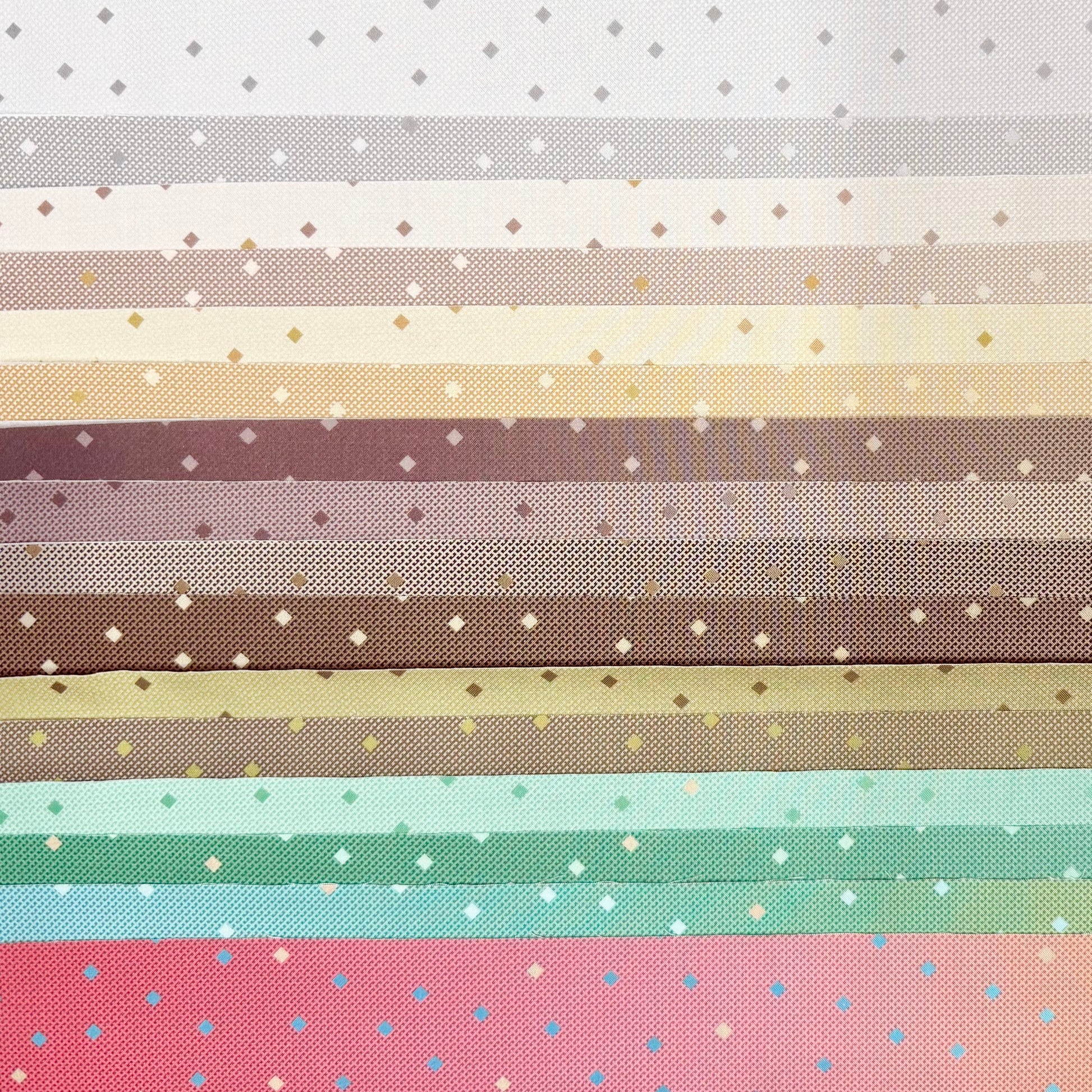 Ground your projects in natural beauty with Gemstone Glow. This gemstone pack blends earthy greens, cocoa browns, and caramel golds with a touch of platinum shine. Each gradient cut sparkles with diamond speckles, offering 16 colours across 8 fabrics. Perfect for nature-inspired quilts, rustic accents, or projects that balance richness with subtle elegance.