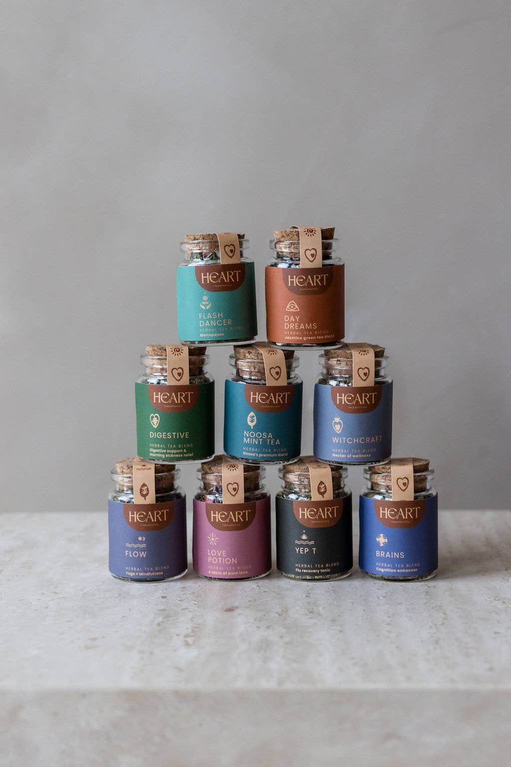 A curated sampler of six organic herbal blends, each crafted by naturopath and chef Misha Moran to nourish body and soul. From stress relief to skin radiance, these teas offer a ritual of wellness in every cup.