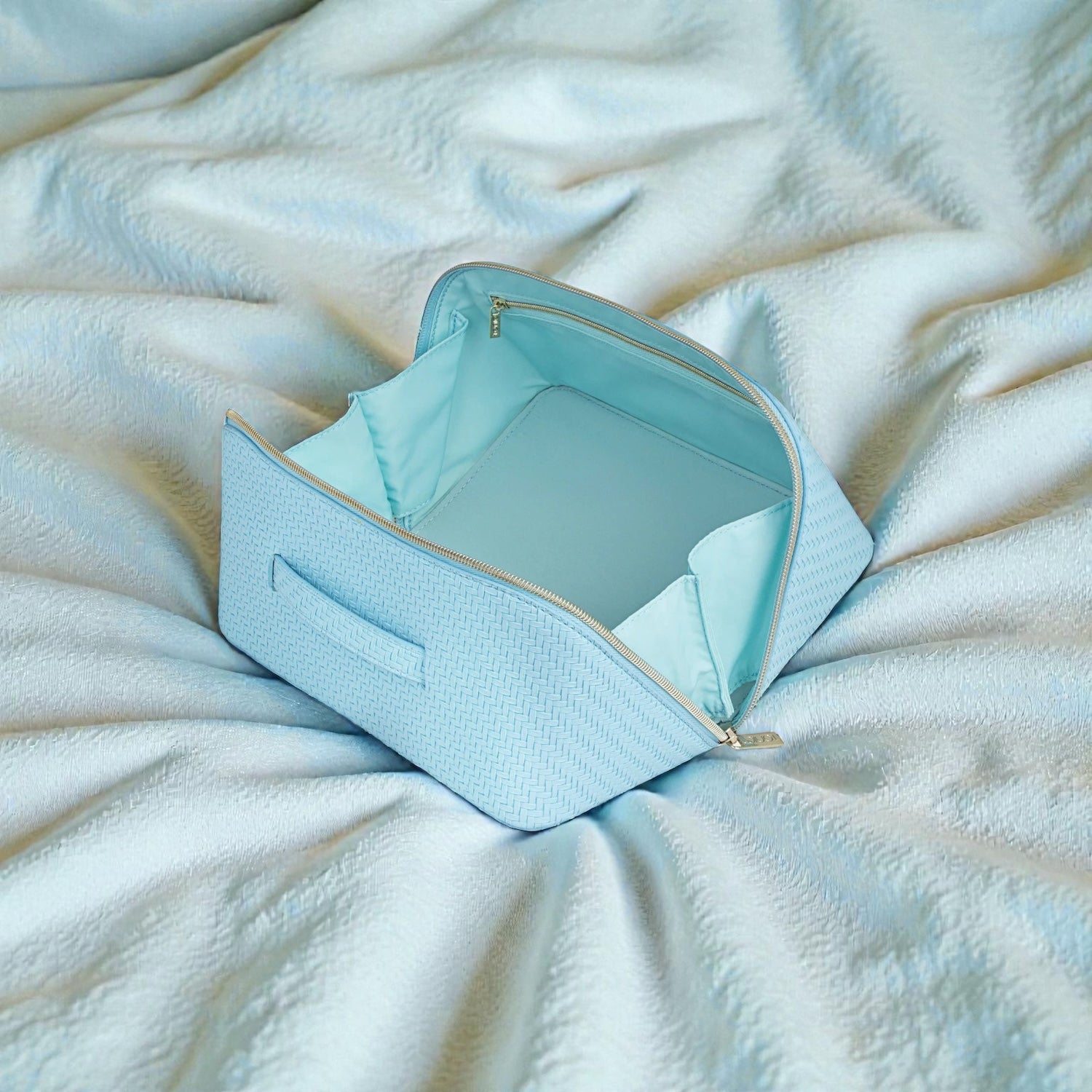 The Herringbone Bag is a sleek and sophisticated addition to your everyday organisation. The gold double zips open wide and flat for easy access to a spacious interior. Use it to organise your beauty essentials or repurpose it as a stylish storage solution for craft, sewing and crochet projects. The internal zipped pocket is ideal for smaller items such as makeup, accessories, threads, hooks, needles or stitch markers. The carry handle makes it perfect for on-the-go use and also allows you to stack multiple bags neatly together.