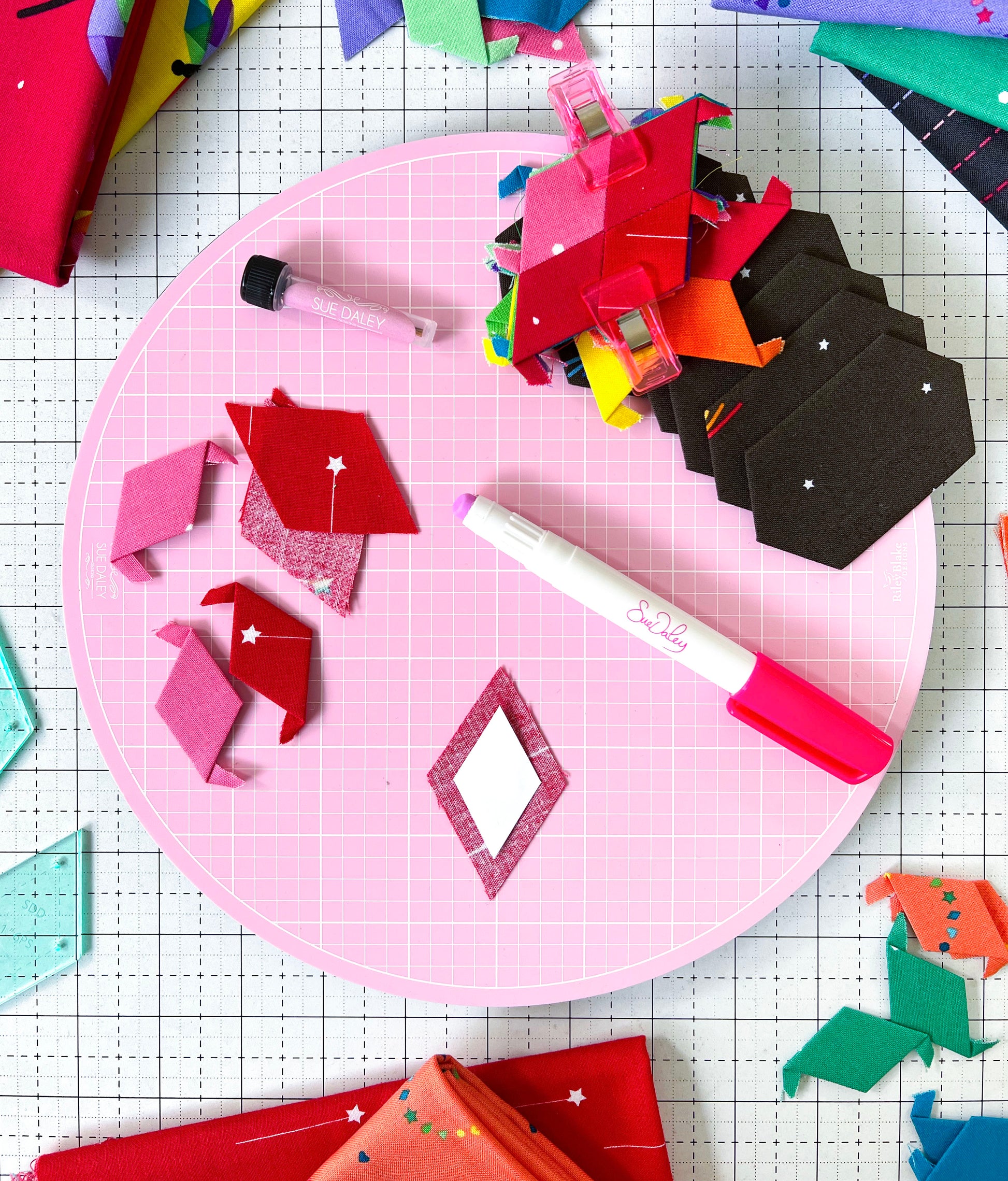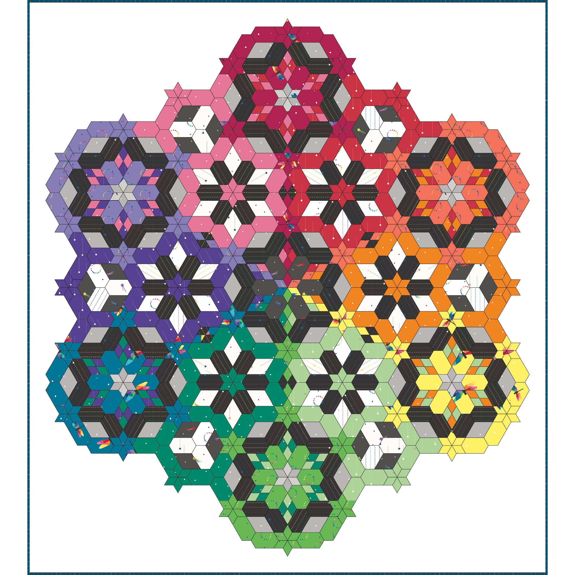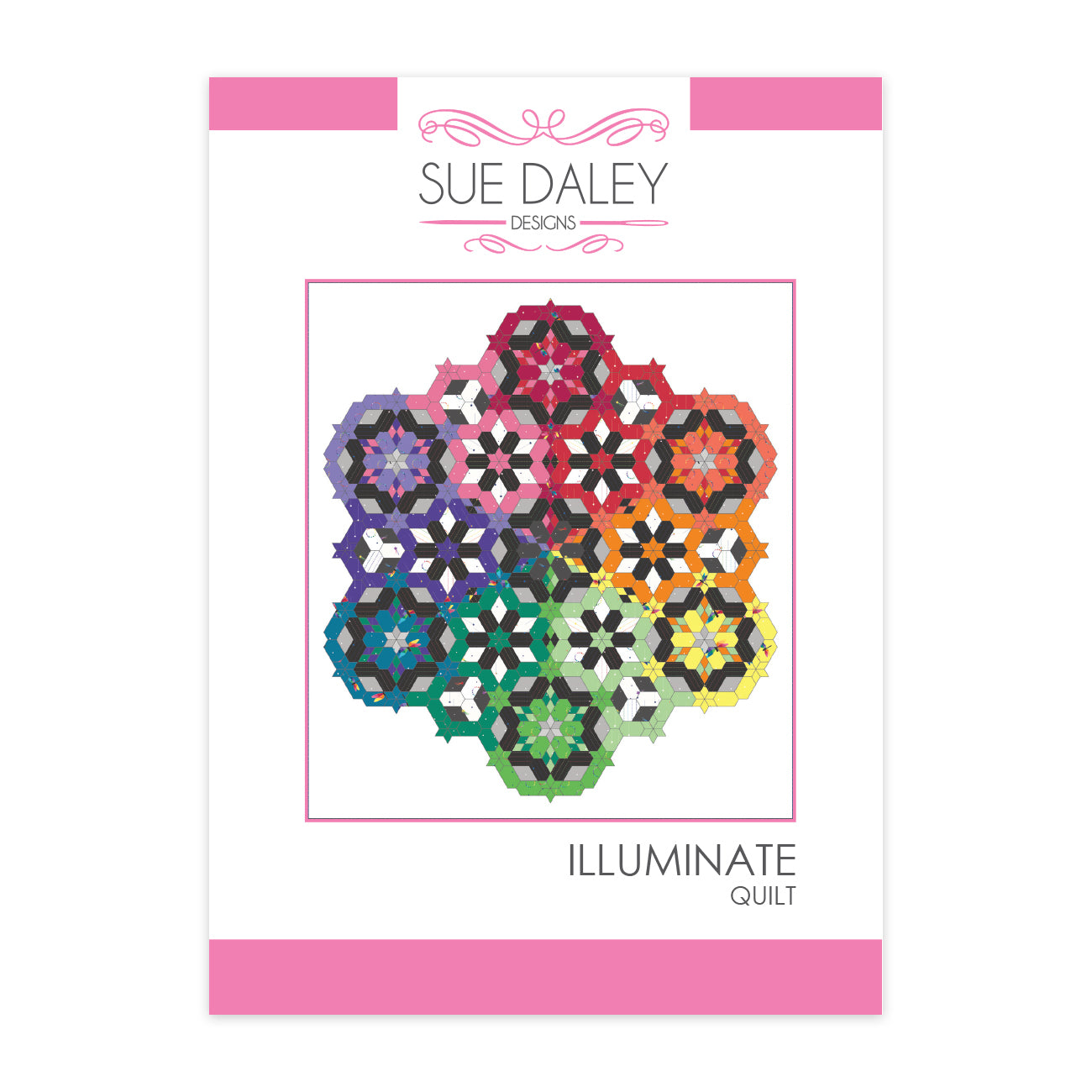 Artikelbeschreibung : Illuminate besteht aus englischem Paper Piecing und Applikationen mit drei verschiedenen Formen. Wir haben ein Sew-Along zur Unterstützung des Quilts, der am Mittwoch, den 17. August 2022 beginnt. Folgen Sie Sue Daleys Blog.