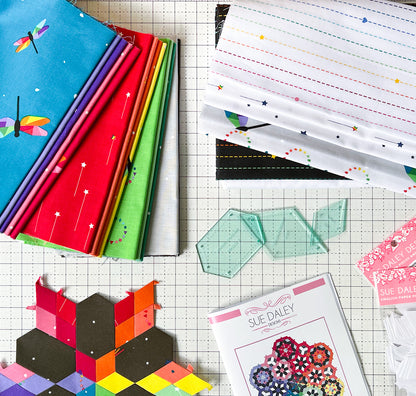 HINWEIS: Dieses Paket enthält kein gedrucktes Muster. Die wöchentlichen Schritte müssen Sie dem Blog von Sue Daley folgen. Andernfalls erwerben Sie die Option „Muster“ oder „Komplettes Quilt-Set“, siehe oben.