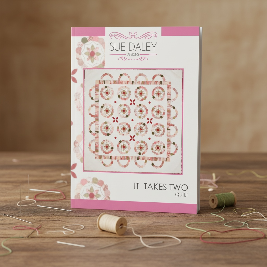 Artikelbeschreibung: „It Takes Two“ besteht aus einer Kombination aus englischem Paper Piecing und Nadeldrehapplikationen mit einem Hauch von Stickerei und ist für 2,5-Zoll-Streifen geeignet.