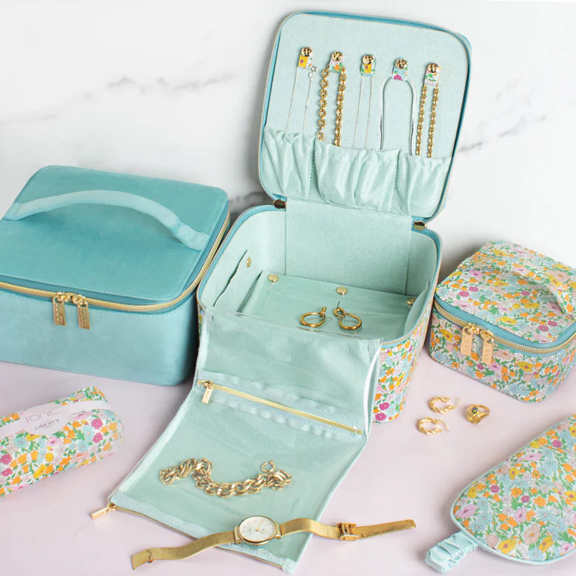 The Large Jewellery Cube keeps it sorted, styled, and safe. Double zips open to reveal trademarked accordion pockets. Clear windows. Earring and ring sections. Necklace loops. Elasticated pockets. Every detail, designed to delight.