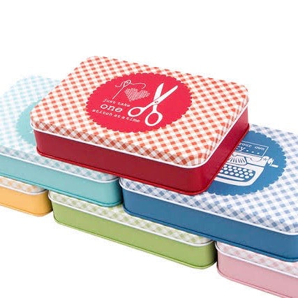 Shellie Whild Sweet little tins with delightful designs and sayings. Extra bonus for me was that it arrived in perfect condition (always worry about things going through the post). The tins are a great size and make great gifts - even for non-sewers.