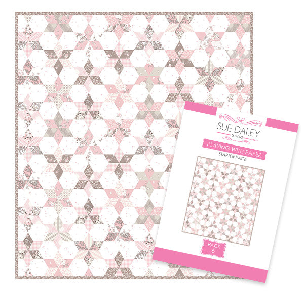 Dies ist ein Starterpaket, das Ihnen den Einstieg in Ihre englische Paper Piecing-Reise erleichtert. Das Design kann zu einem Kissen, einer Steppdecke oder einer großen Steppdecke verarbeitet werden.