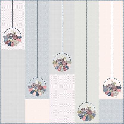 Artikelbeschreibung : Die Torbay-Steppdecke ist eine bezaubernde Patchwork-Steppdecke mit Körben aus englischem Papier, die nach unten appliziert sind, so dass sie aussehen, als hingen applizierte, schicke Schnittblumen daran.