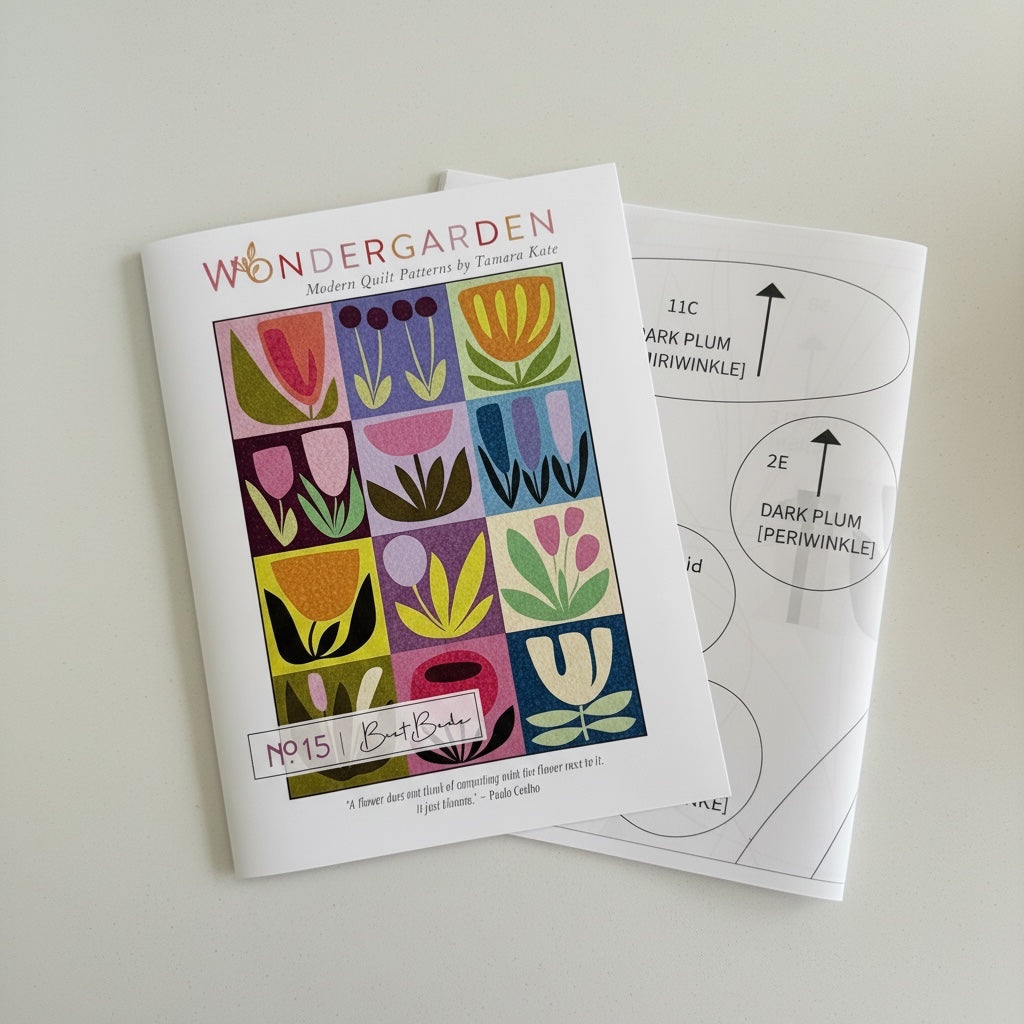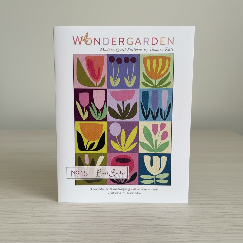 The Best Buds project uses a creative raw-edge appliqué technique where every stitch serves a dual purpose: securing your floral shapes while simultaneously quilting the piece. The result is a modern, textured masterpiece with a lively handmade energy. As number 15 in the popular Wondergarden range, this project is designed for makers looking for a fresh, expressive, and artistic addition to their home.