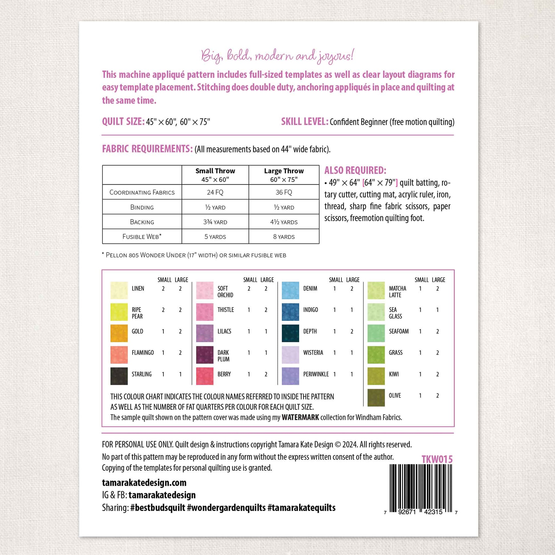 Large Format: Planned specifically for the 60" x 75" finished quilt size.