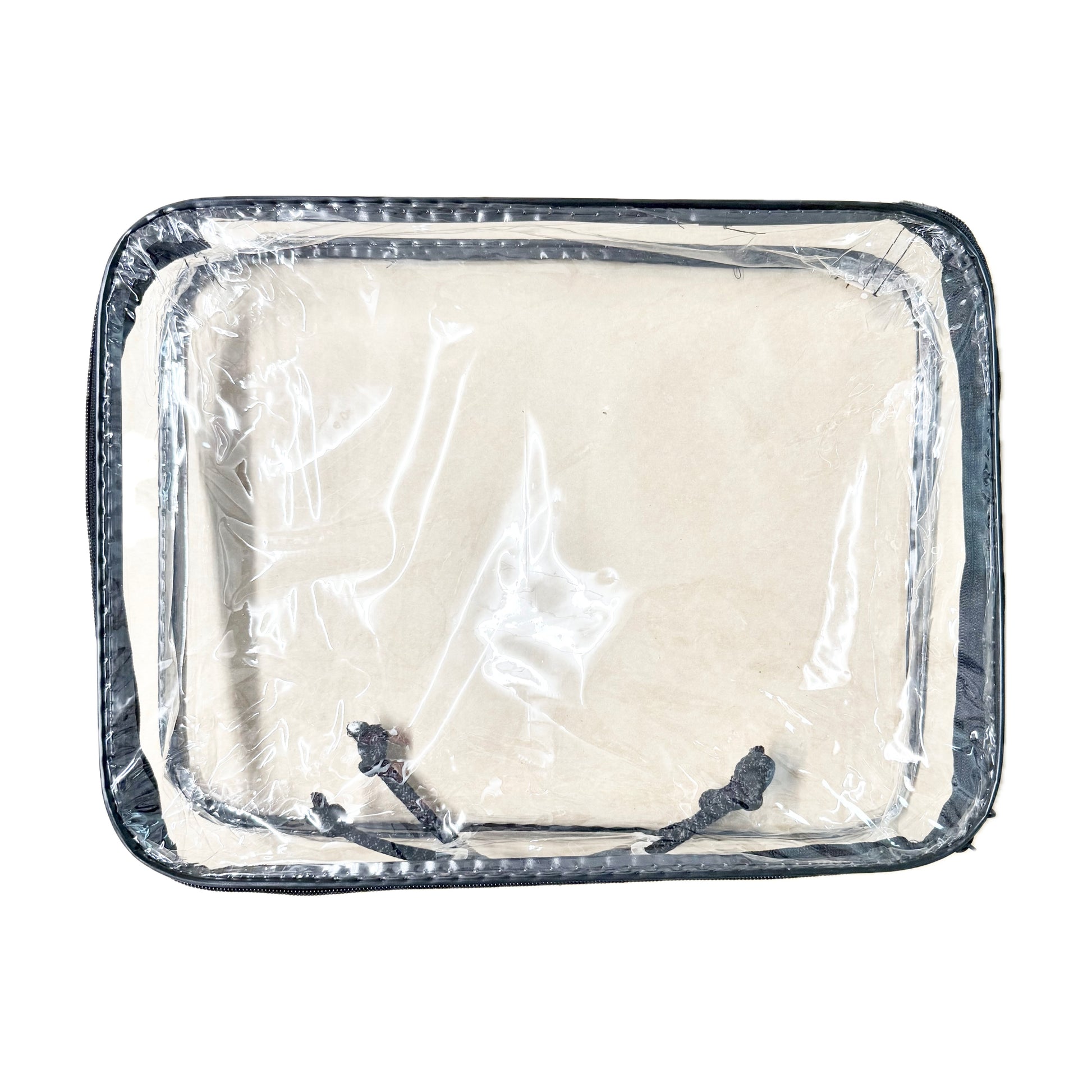 Design: Transparent body with sturdy handles and a secure zipper closure