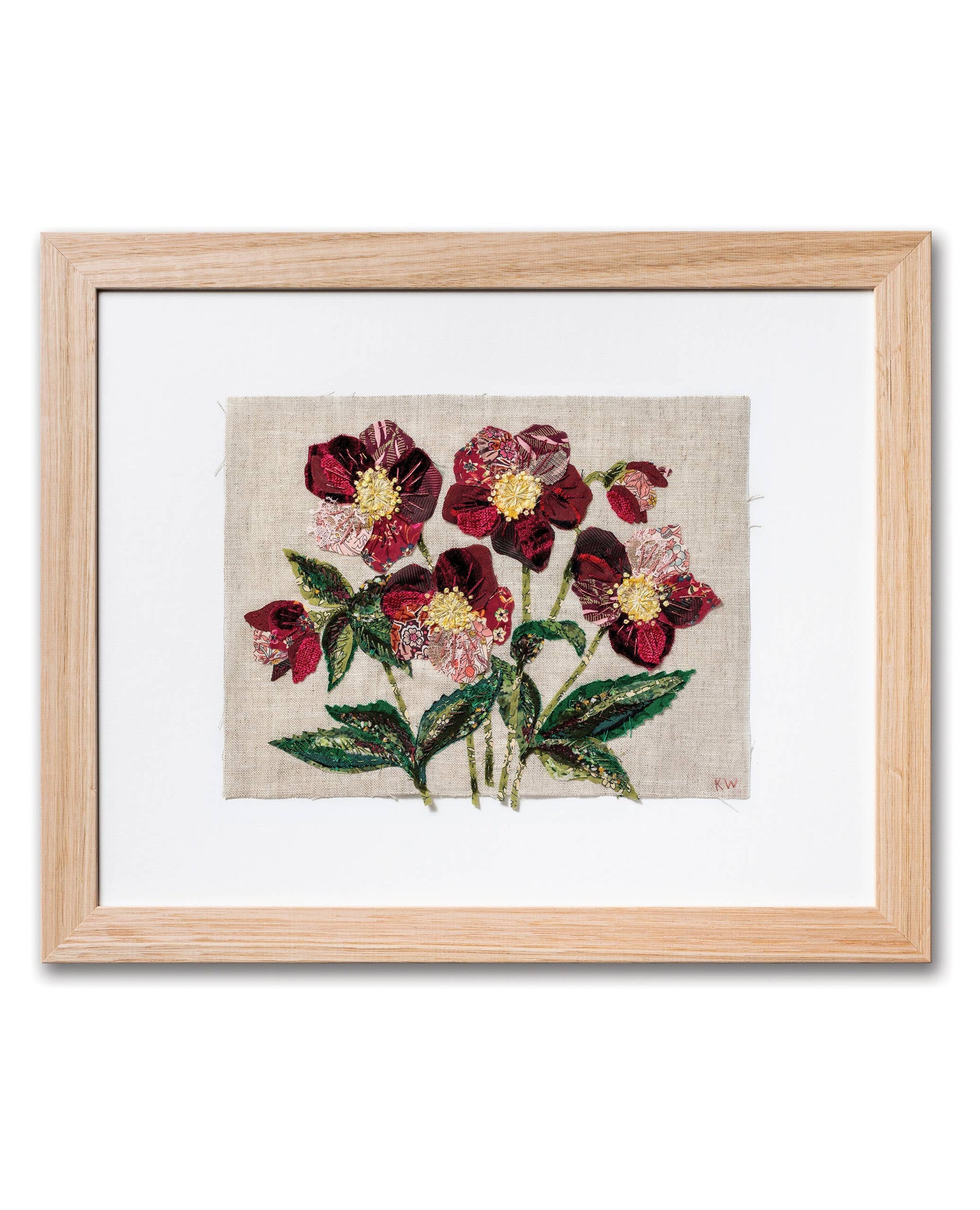 The Hellebores Kit is here! Also known as Winter Rose or Christmas Rose, these exquisite burgundy blooms simply radiate beauty. The kit includes a natural linen background to work on, as well as a curated selection of sumptuous, textured fabrics like velvet and luxurious silk, as well as hand-dyed vintage & reclaimed fabrics, lace and a selection of beautiful Liberty London Tana Lawn prints. The Hellebores Kit is filled with gorgeous warm, rich colours and includes DMC embroidery threads to lift the fabrics even further, and for the first time ever, metallic threads are included, to really make your artwork shimmer!