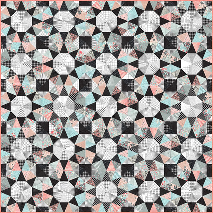 This quilt is an all over English Paper Pieced design, perfect for using scrappy fabrics!