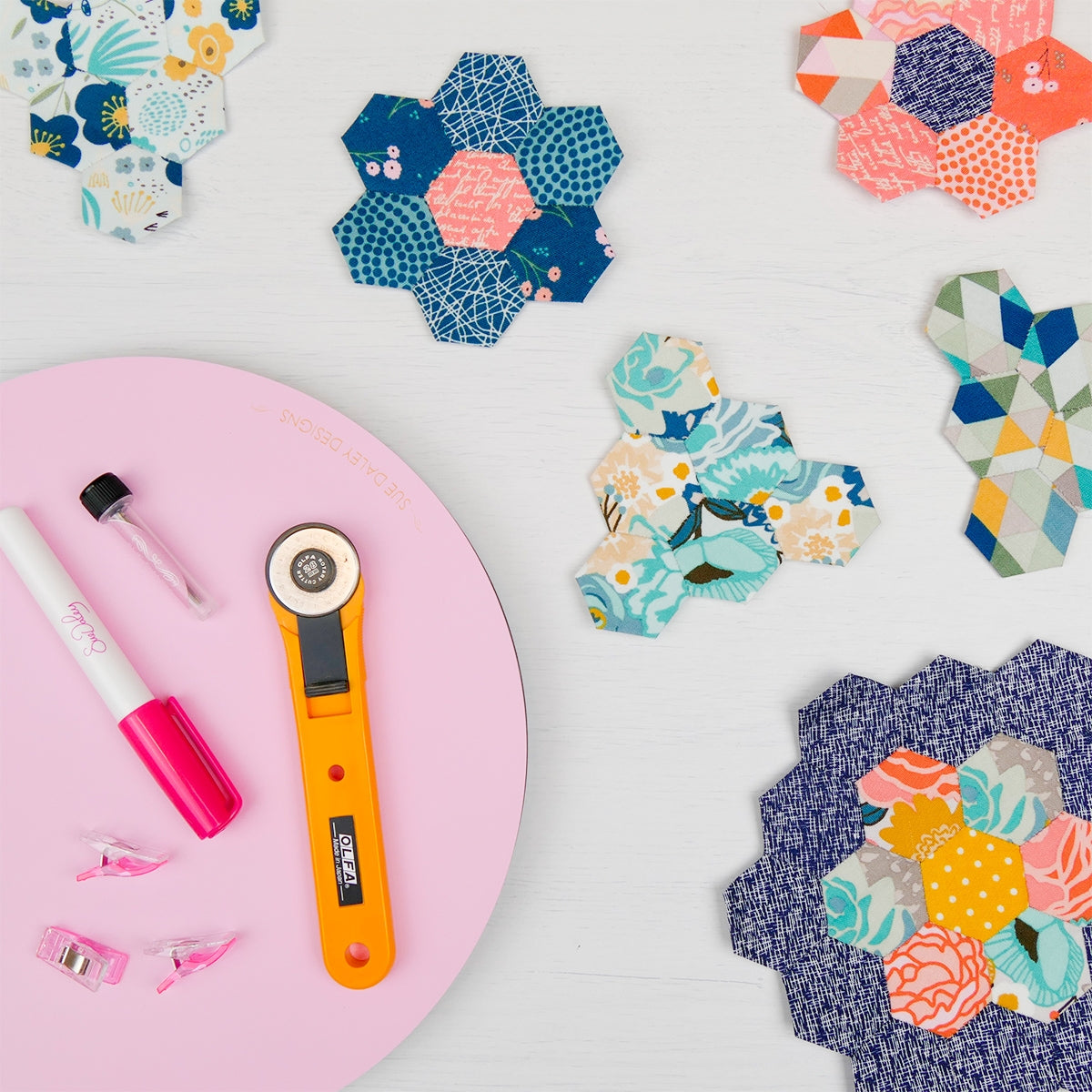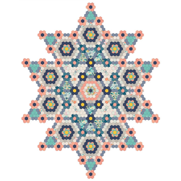 Rose of Kaleigh is an all over English Paper Pieced hexagon quilt made with Ava Rose by Deena Rutter for Riley Blake Designs.