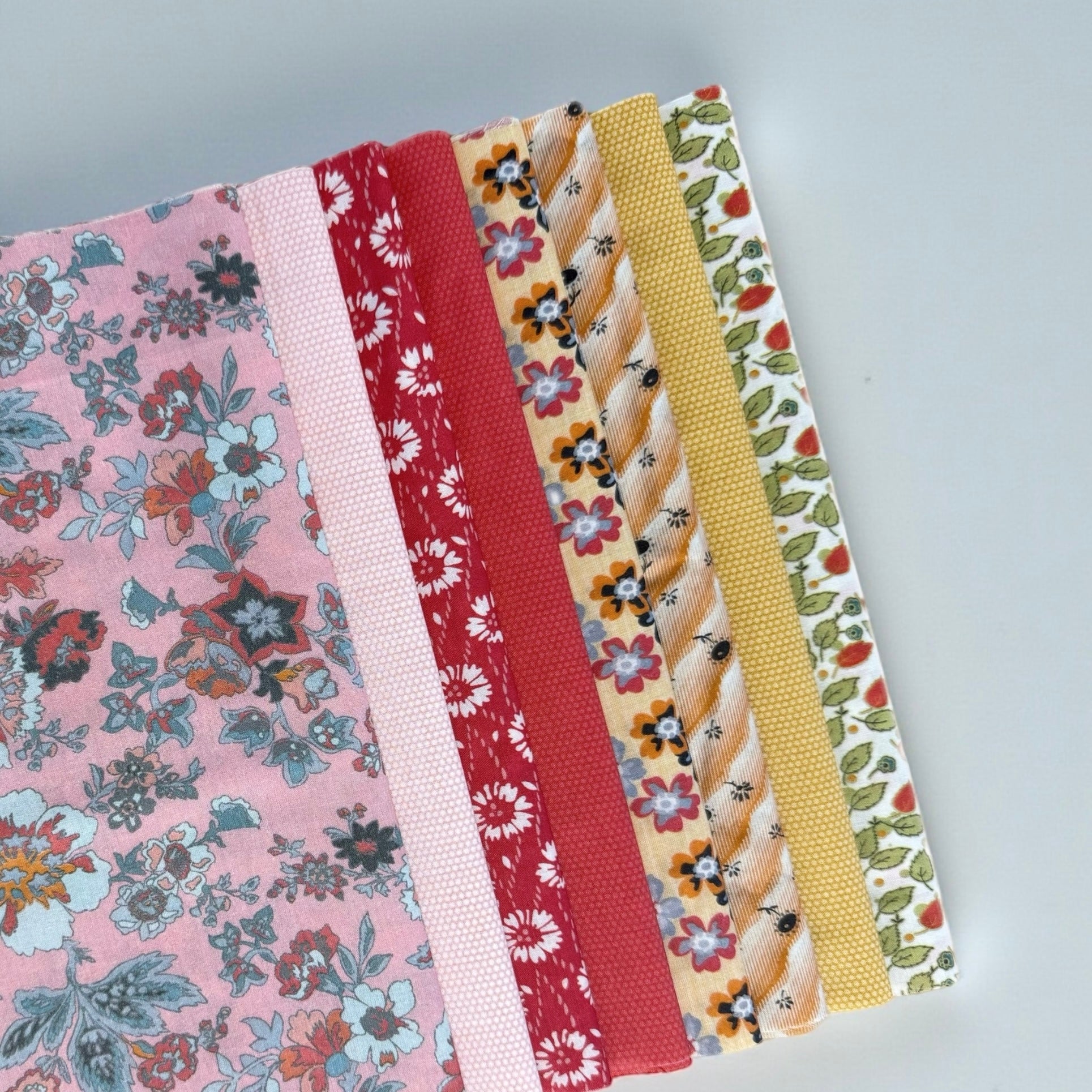 Contents: 8 fabrics measuring 25cm x width of fabric, a total of 2 metres